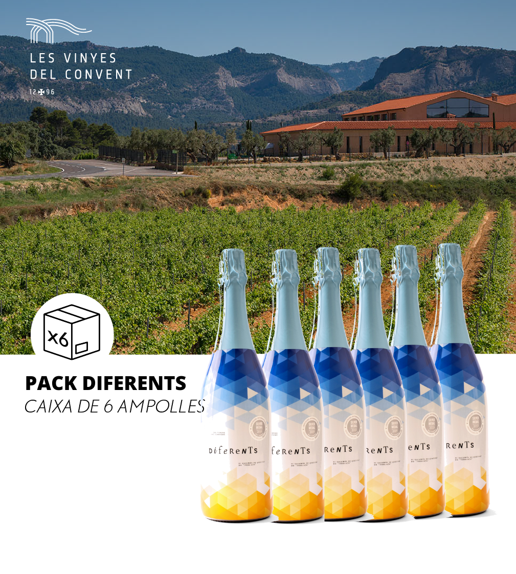 Diferents 2019. Un escumós amb bombolles terraltines que us atraparan. Elaborat amb Garnatxa Blanca, Parellada i Macabeu. De color groc llimona pàl·lid, compta amb una fina i elegant bombolla.